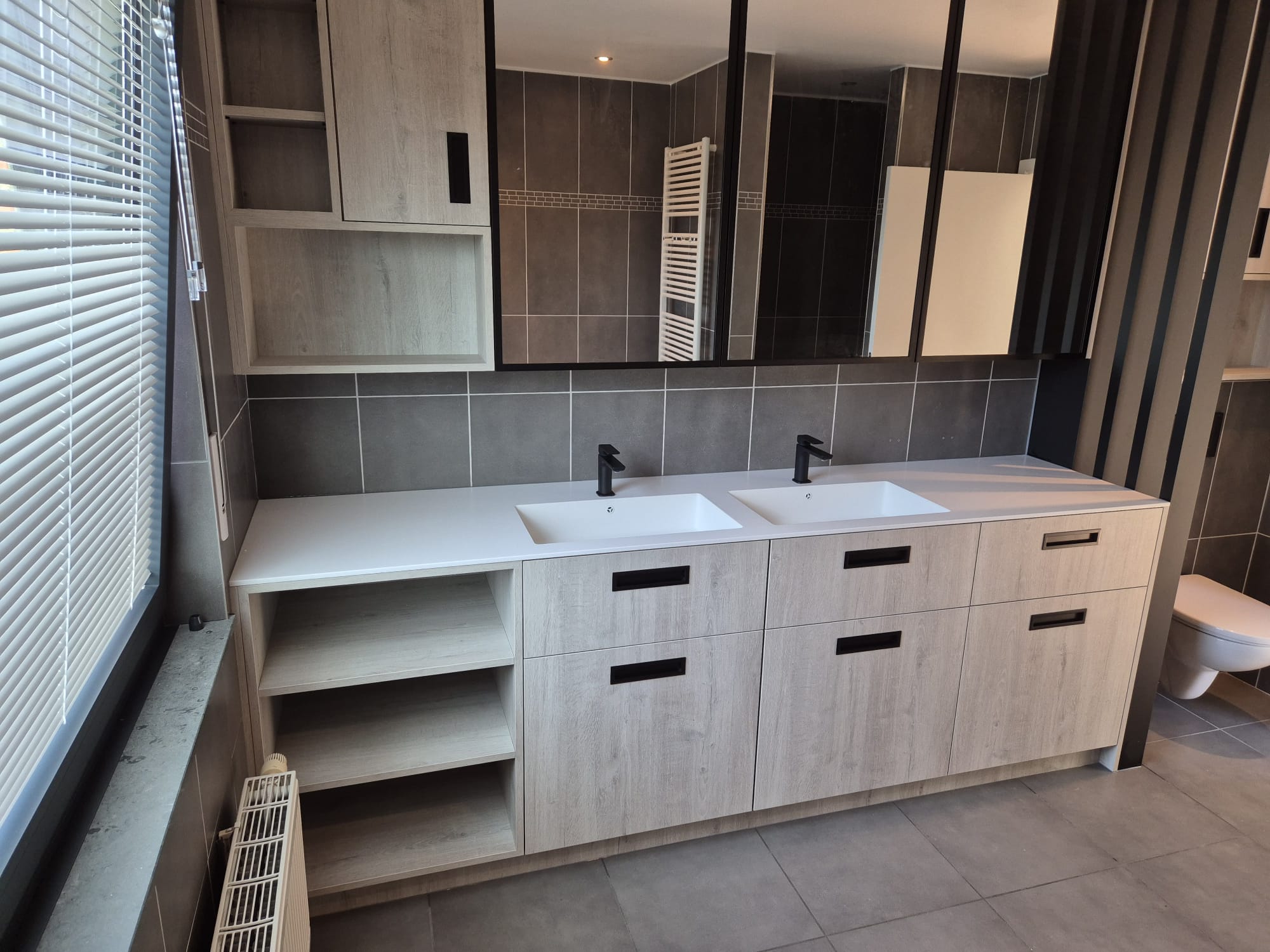 Bij dit project hebben we het oude badkamermeubel en toilet uitgebroken om dit nieuwe pareltje in de plaats te zetten.