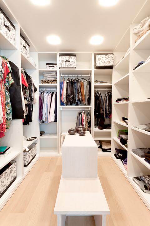Een dressing die de hele ruimte vult met een praktisch eiland in het midden.